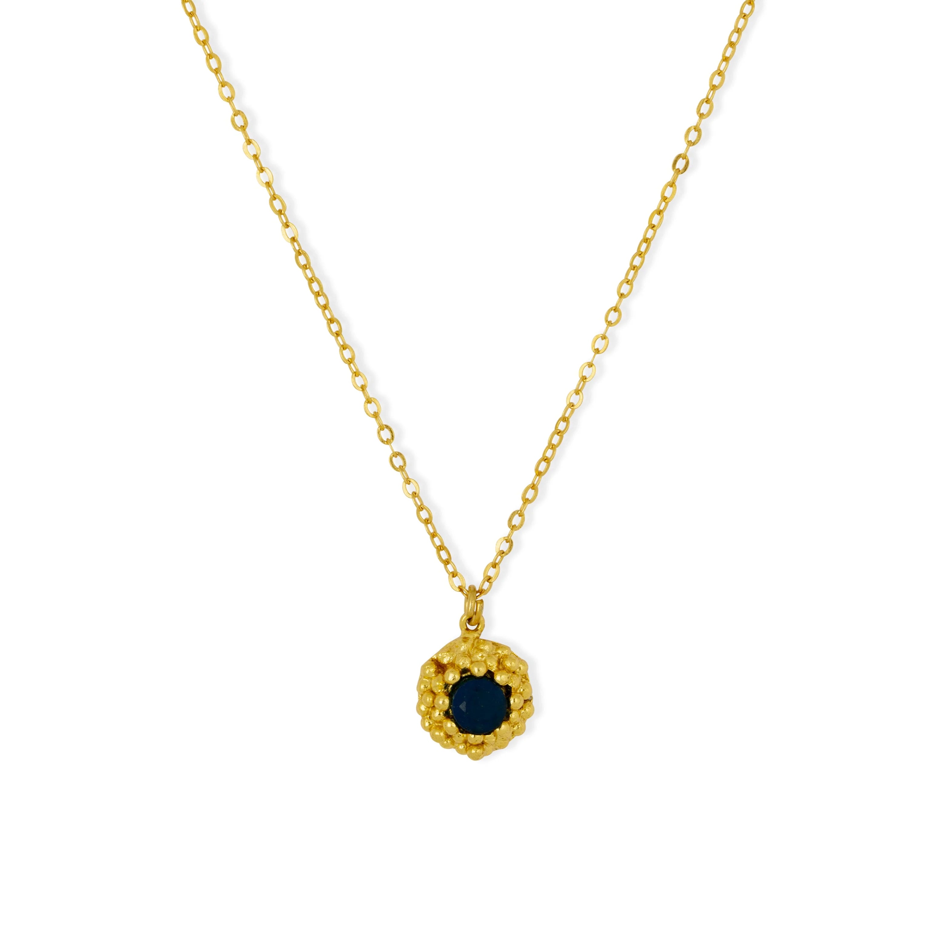 The Maine Gemstone Flower Charm Necklace features a delicate gold-plated chain adorned with a finely crafted flower pendant, centered with a striking black onyx gemstone. Its elegant yet understated design makes it an ideal accessory for everyday wear, adding a touch of sophistication to any outfit. The necklace is part of the Maine collection, which includes coordinating earrings, rings, and bracelets, allowing you to create a harmonious and polished look.