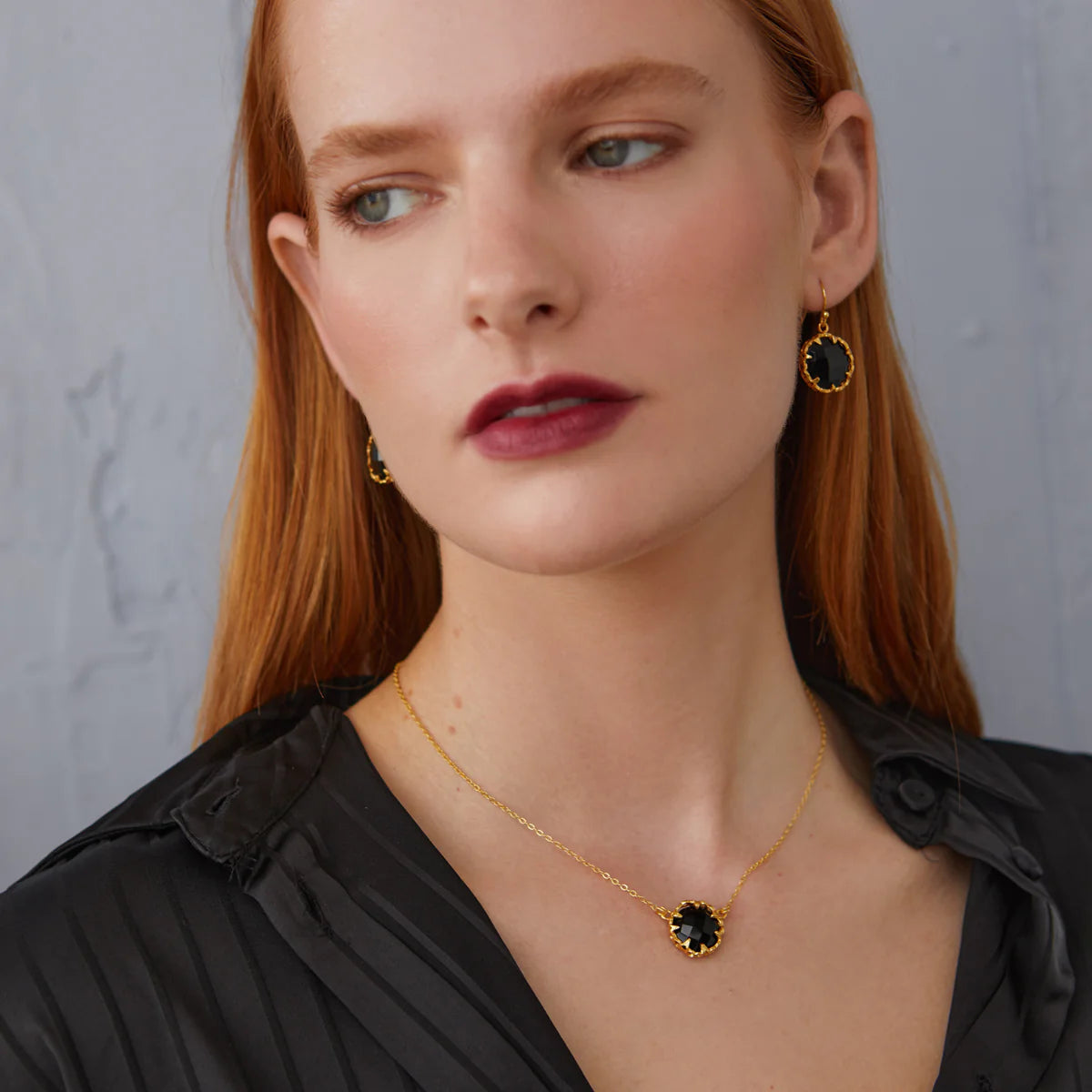 Ashiana's Icon Petite necklace is introduced here in black onyx, with a faceted gemstone pendant. This short necklace features a vintage claw setting and creates a truly unique gemstone necklace that can be work in combination with your other necklaces to create the perfect stack.